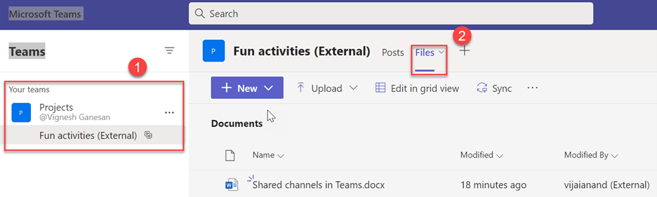 In this step, you will see how to share channel with external users. This step needs to be performed by Tenant 1 user.