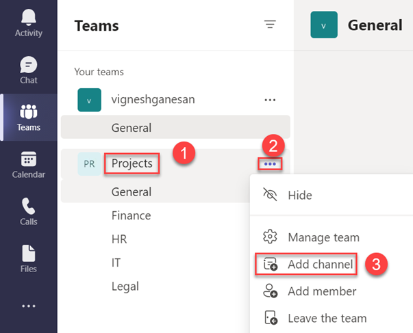 In this step, you will see how to create a shared channel in Microsoft Teams app. This step needs to be performed by the user in Tenant 1.