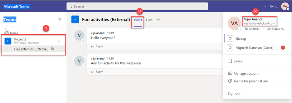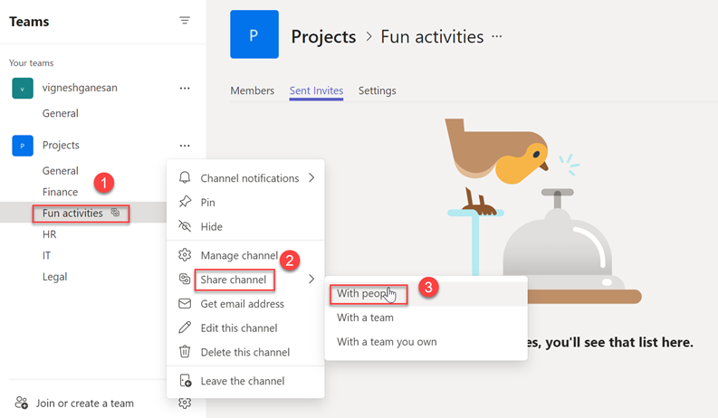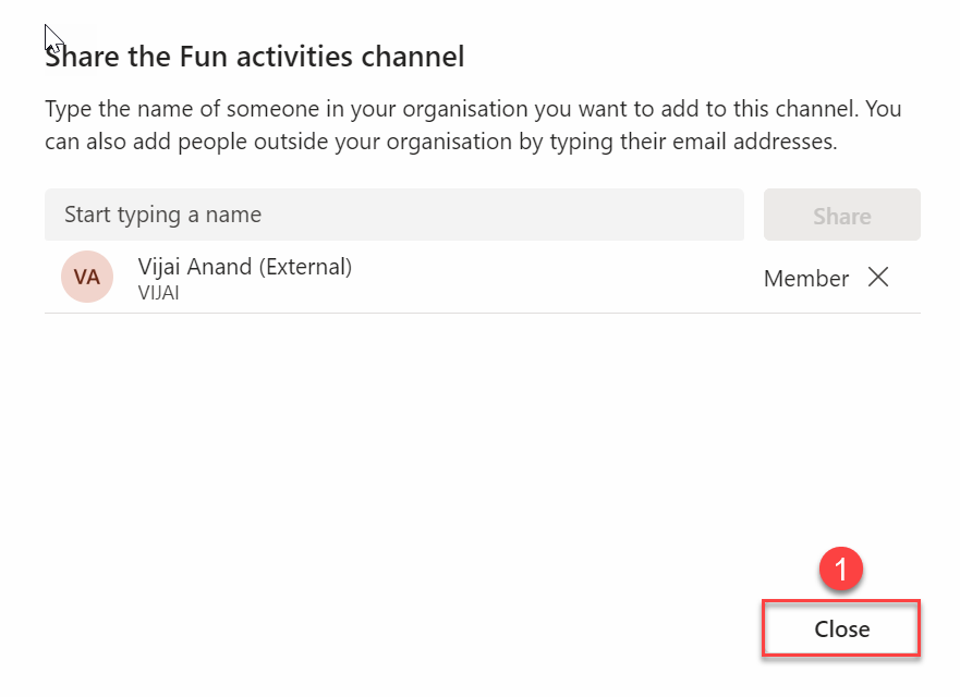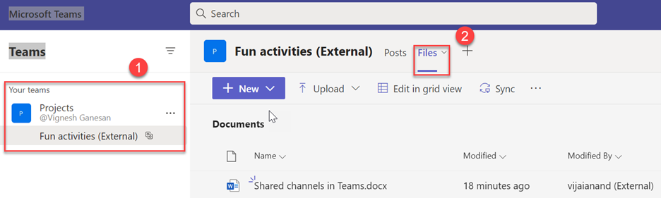 In this step, you will see how to share channel with external users. This step needs to be performed by Tenant 1 user.